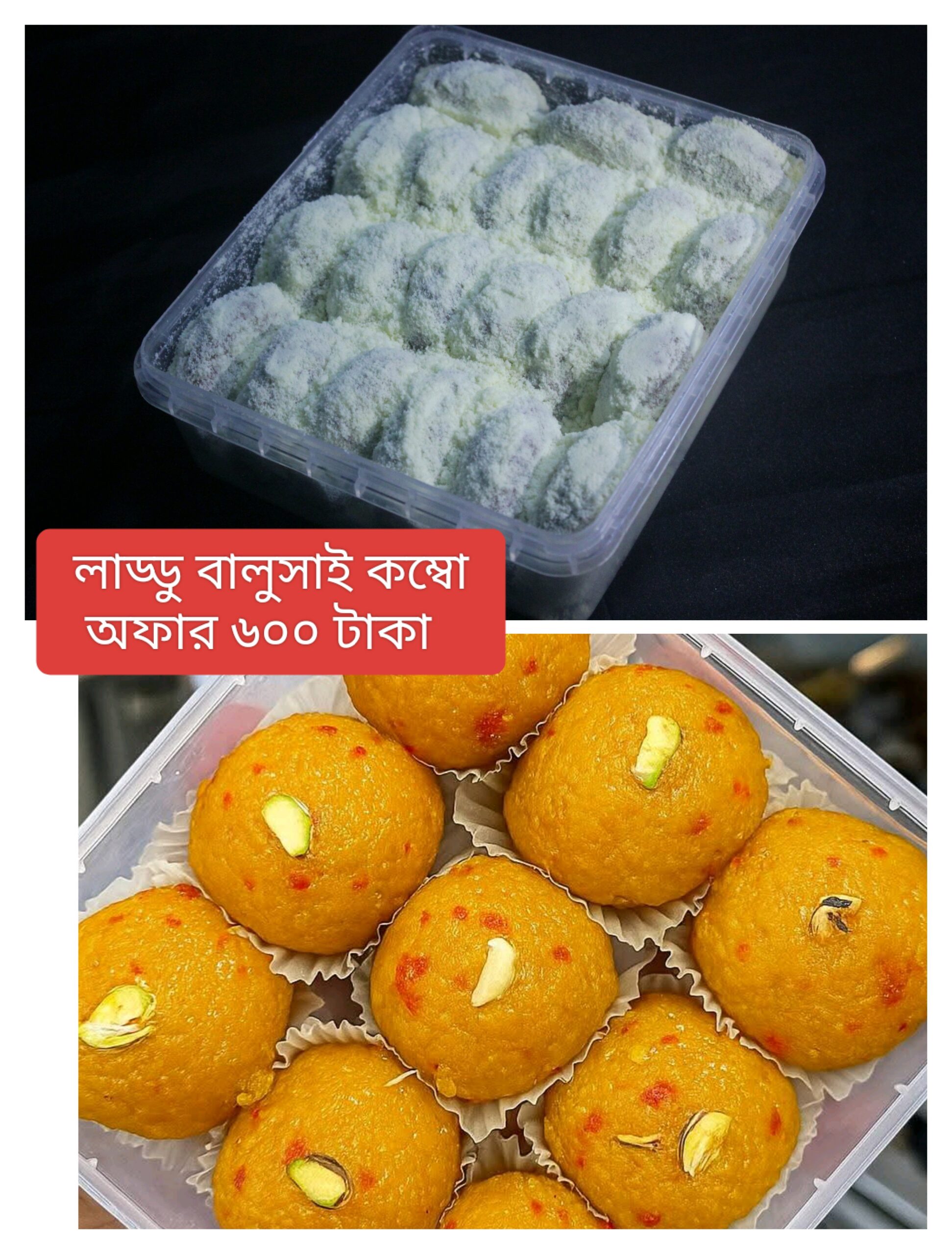 বালুসাই ১ /20 PCs কেজি মিহিদানা 450/9 PCs গ্রাম মোট ১.৫ কেজি থাকবে।